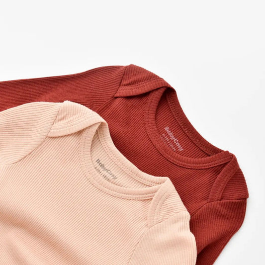 Long Sleeve Organic Modal Bodysuit Set - Burgundy & Salmon