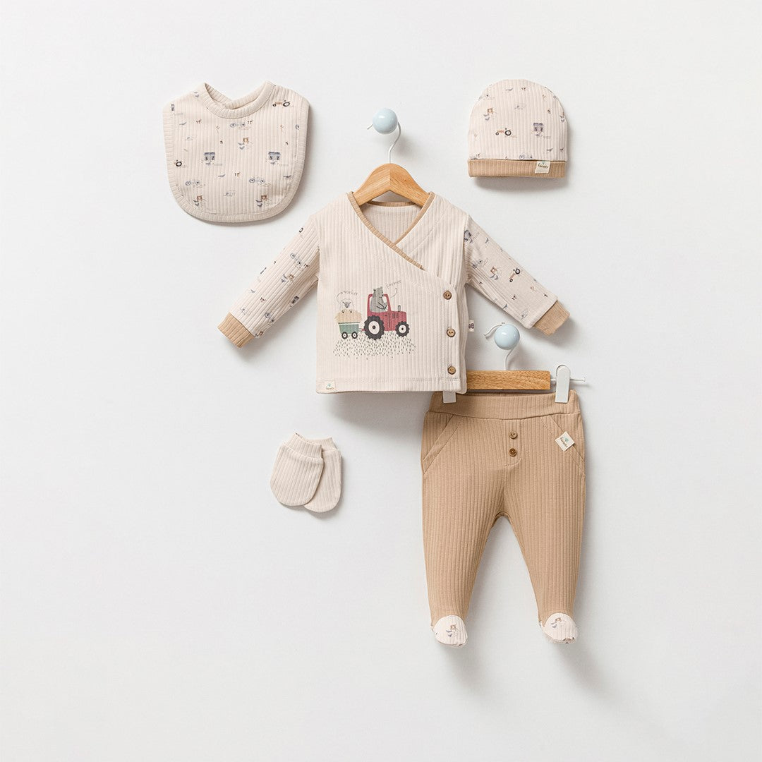 Deze charmante 5-delige Tractor Set combineert praktische benodigdheden met een leuk, fantasierijk ontwerp. Perfect voor zowel jongens als meisjes, een geweldig cadeau voor kersverse ouders of een schattige toevoeging aan de garderobe van je eigen baby.