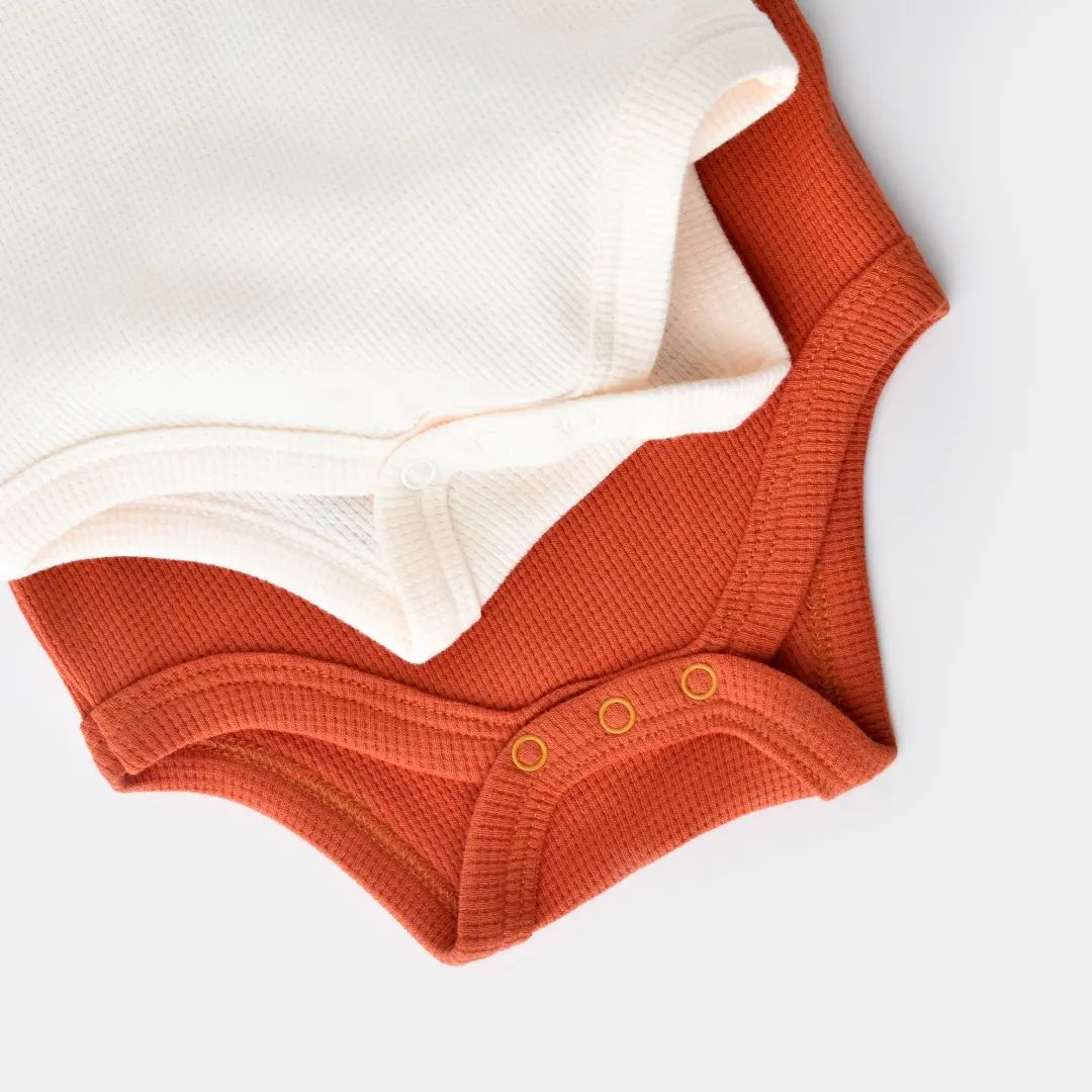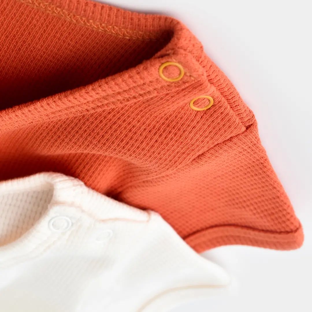 Kleed je kleintje in stijl en comfort met onze Romper Set - Terracotta & Wit, een perfecte aanvulling op de garderobe van je baby. Verkrijgbaar in maten van 3-24 maanden, zijn deze rompertjes ontworpen om met je baby mee te groeien en bieden ze op elk moment een knusse en comfortabele pasvorm.