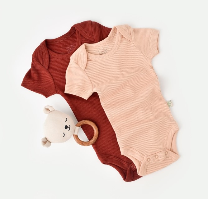 Stijlvolle kleuren: De set bevat een rompertje in bordeauxrood en een in een rustgevende zalmtint, die stijlvolle en veelzijdige opties bieden voor dagelijks gebruik.