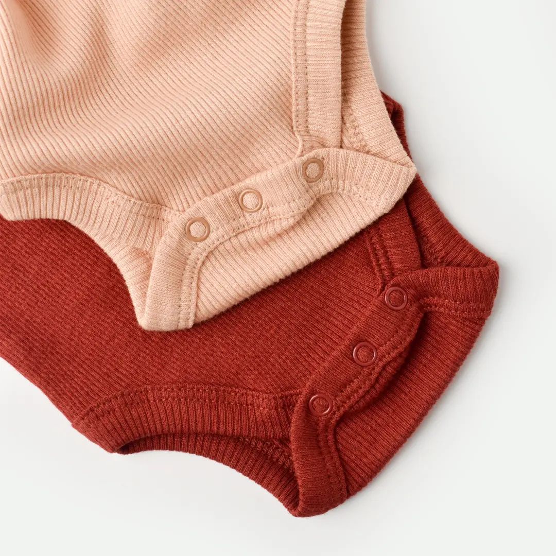 Kies de Modal Bodysuit Set - Burgundy & Salmon voor een perfecte mix van luxe, comfort en stijl, waarmee de dagelijkse outfits van je baby zowel praktisch als schattig zijn.