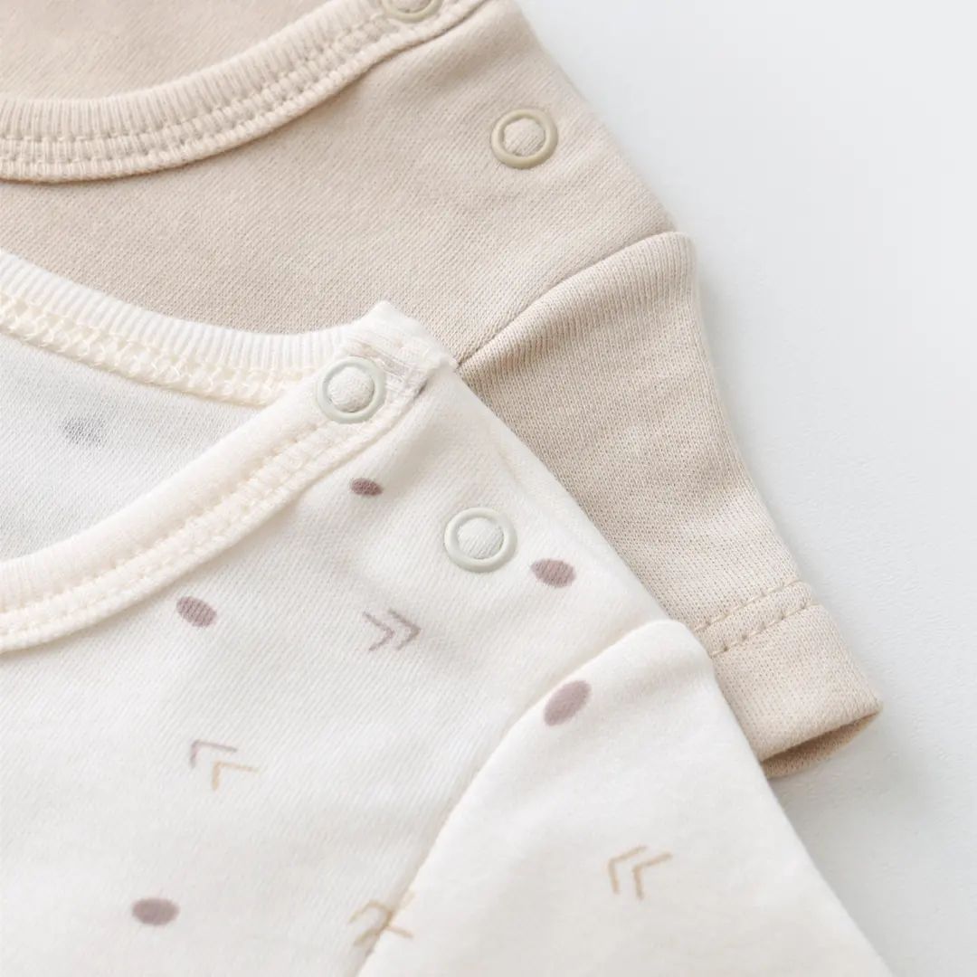 Stijlvolle variatie: De set bevat een crèmekleurige romper en een witte romper met patroon, die veelzijdige opties bieden voor dagelijks gebruik.