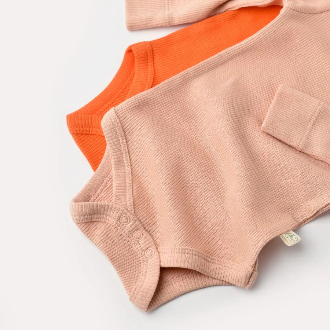 Long Sleeve Organic Modal Bodysuit Set - Orange & Peach