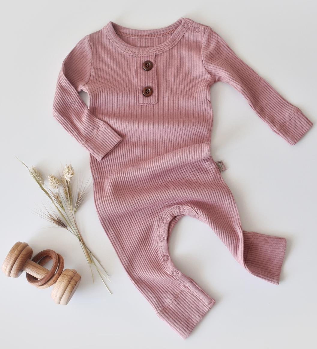 Crafted from a premium blend of 50% organic cotton and 50% modal, this romper offers an ultra-soft feel that’s gentle on your baby’s delicate skin. The beautiful rose color adds a touch of sophistication.