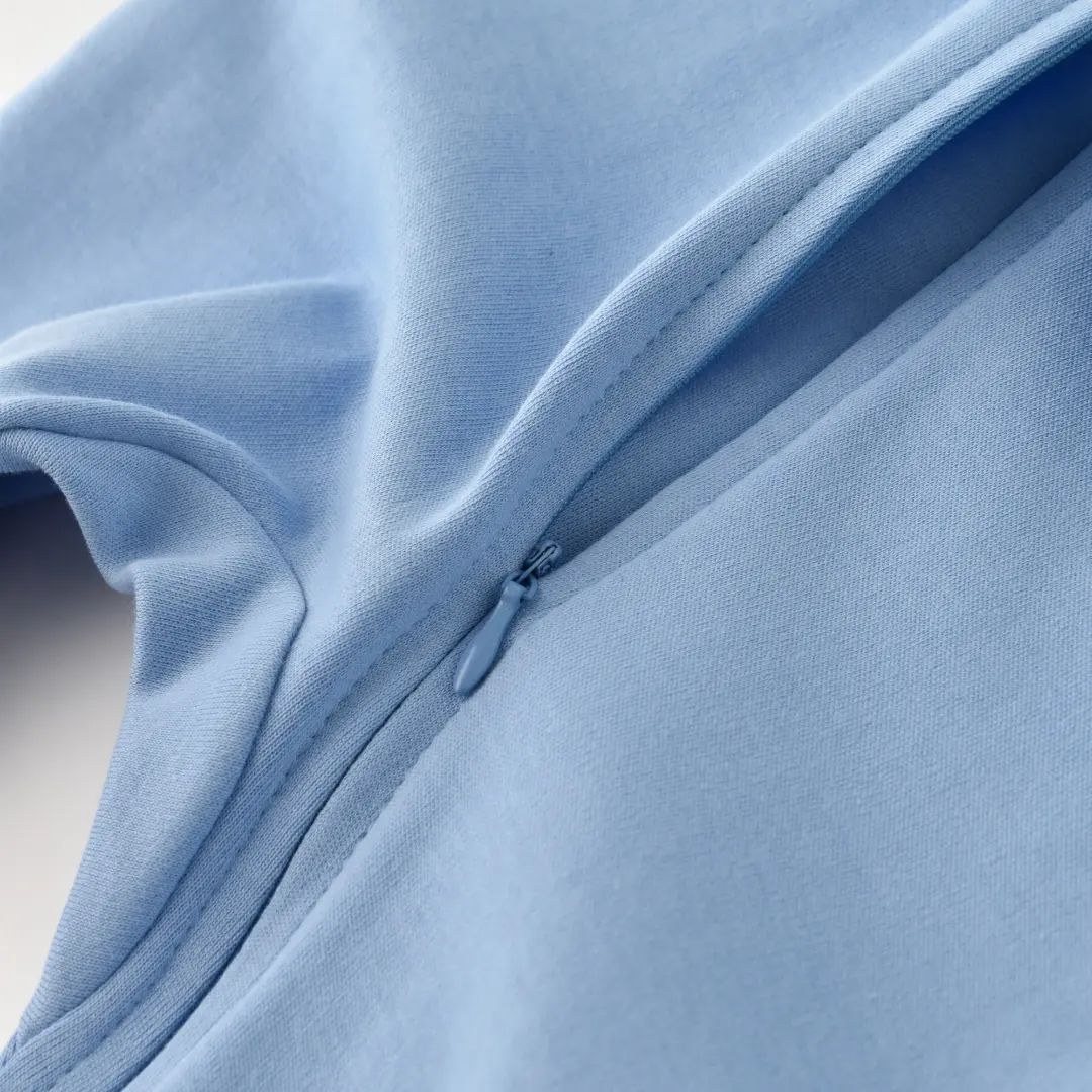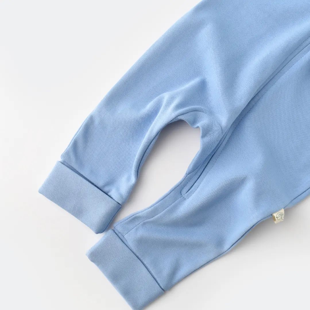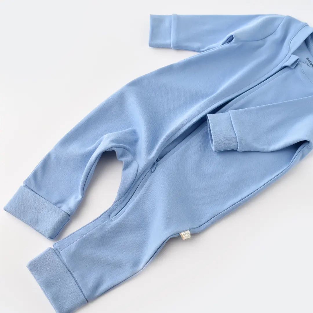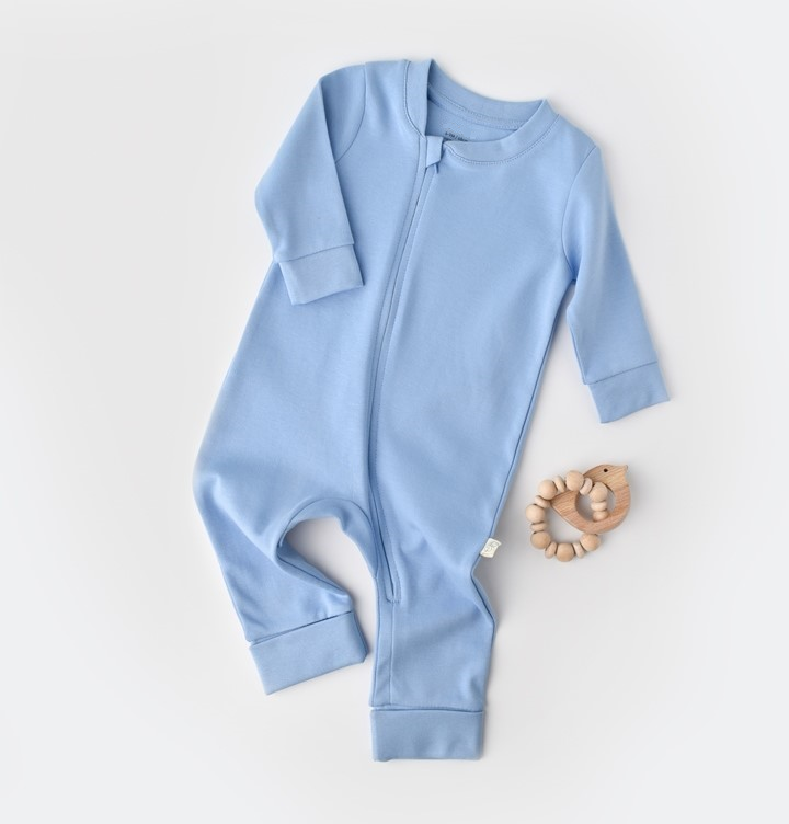 Dress your baby in the ultimate blend of comfort and style with our Zippered Romper - Blue —a timeless piece for any little one.